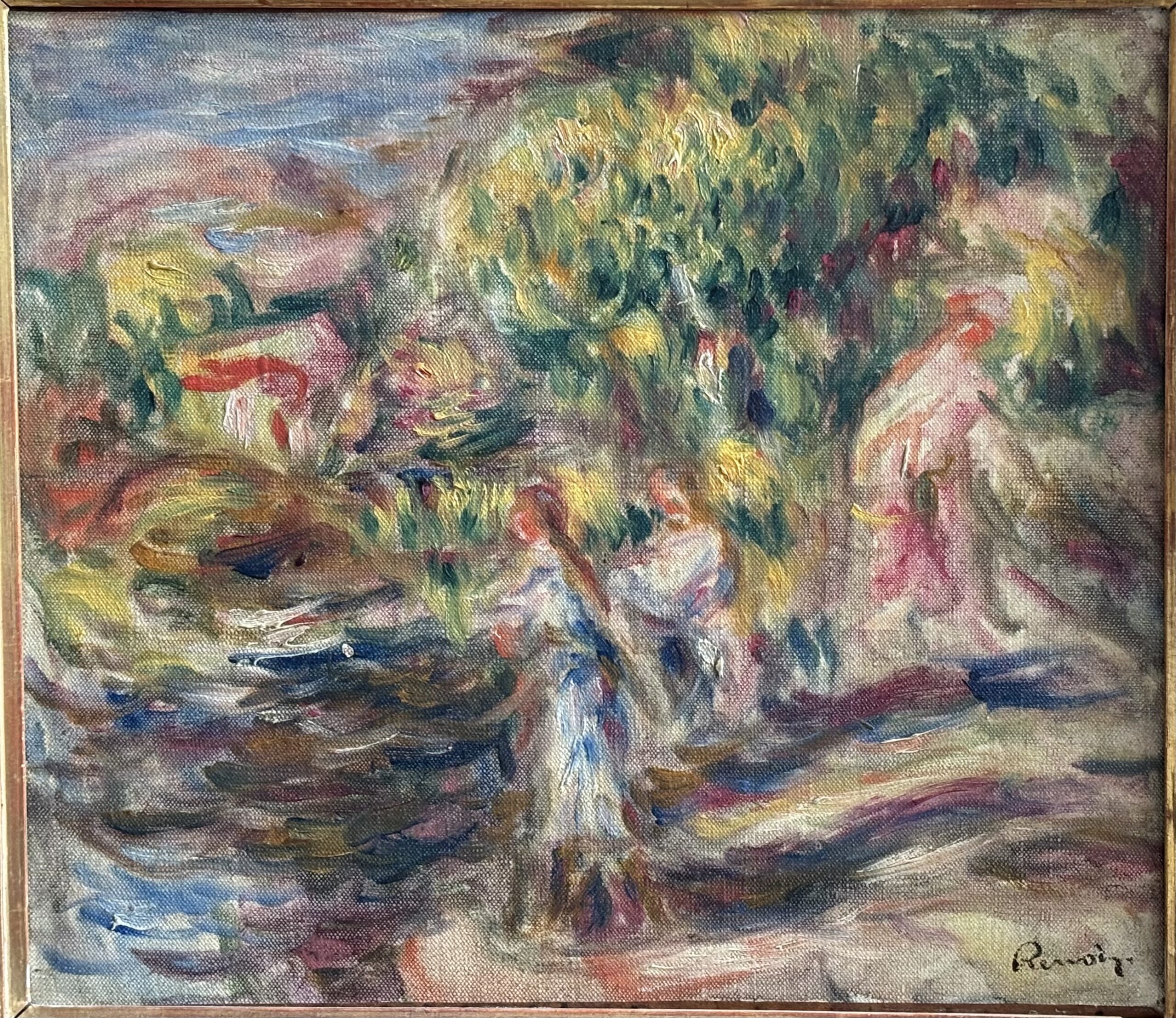 ANTIQUE ET CLASSIQUE Vendredi 05 Décembre 2025 14:00 Salle 5 - Hôtel Drouot , 9, rue Drouot 75009 Paris Voir le catalogue de la vente Lot 39 Pierre-Auguste RENOIR (1841-1919) Esquisse de laveuses, paysage, 1916 Huile sur toile, porte le cachet de la signature en bas à droite H. 30 cm – L. 35 cm …